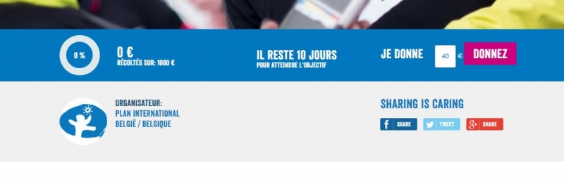 - Votre action est en ligne: il est temps de la faire connaître! Sollicitez vos proches. Le lien de votre page est facile à partager par mail, sur vos invitations d’événement et sur vos faire-part de naissance. Pour les réseaux sociaux, vous n’avez qu’à cliquer sur les boutons prévus à cet effet.